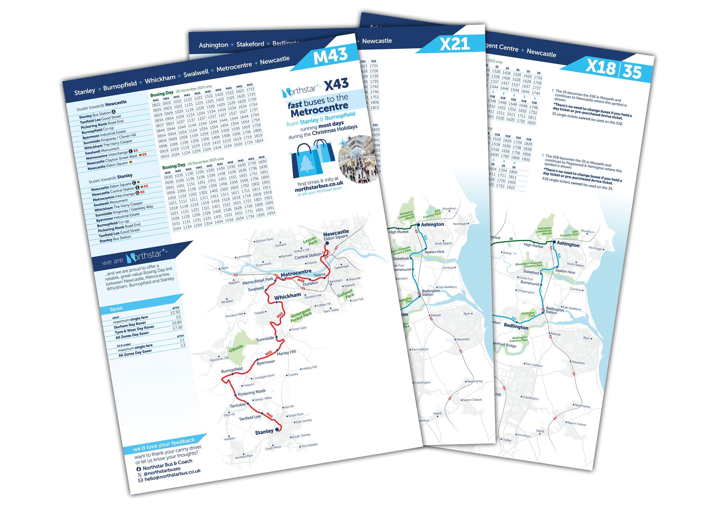When Northstar needed professionally formatted timetables for their special Boxing Day 2025 bus services, they turned to Caeruleus Creative.